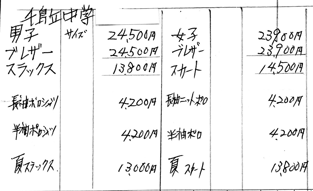 千鳥丘中学校 制服のご案内