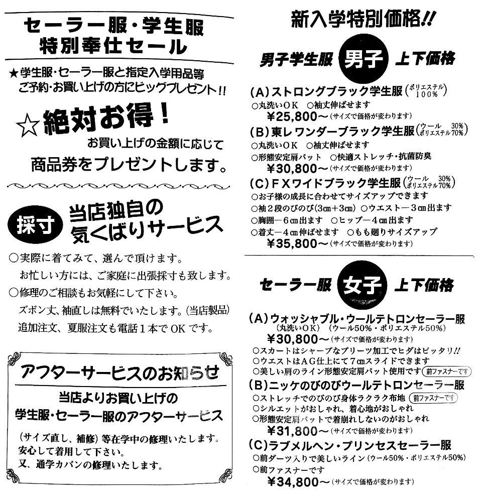 左京山中学校 制服のご案内